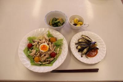 料理は「具だくさんのっけ盛りソーメン」「きゅうりのたたき漬け」「2色白玉あずき」などをつくりました。