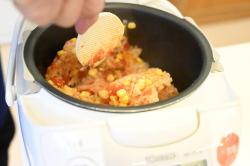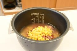- 水を炊飯器の2合のラインまで加える