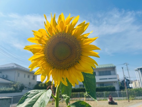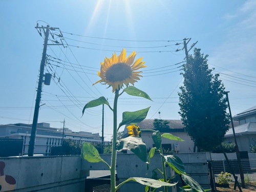 昨年度に引き続き市立中央保育所のご協力のもとひまわりを育てています。今年は記録的な猛暑の中ですが、暑さにも負けず大きく成長中です。