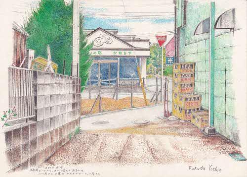 まちの記憶は、四街道市内のかつての風景と、その場所にまつわるエピソードを添えたコラムです。四街道市に生まれ育ち、その地で70年以上暮らしている画家の福田芳生が、記憶をたどりながら描いた色鉛筆画とテキストで綴ります。(絵・文:福田芳生)まちの記憶について