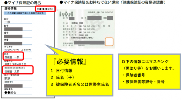- マスキング処理されていない保険証の写しが添付されて申請があった場合には、市でマスキング処理を行います。