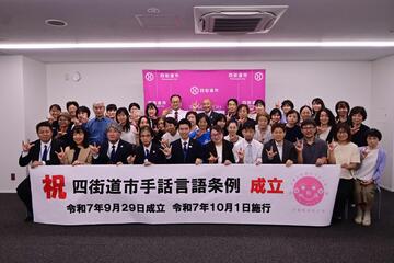 四街道市では、障がいの有無にかかわらず、すべての人が互いの人格と個性を尊重し、支え合う共生社会の実現を目指して「四街道市手話言語条例」を制定し、令和7年10月1日(水曜)に施行しました。