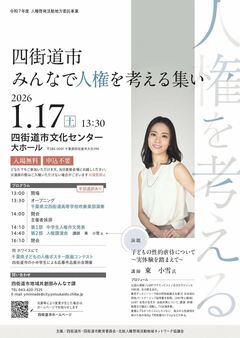 人権は、誰にとっても身近で大切なもの、違いを認め合う心によって守られるものですが、現在も多くの人々が差別や偏見に直面し、基本的人権が守られていない状況が存在します。このことから、人権について理解を深める機会を提供するため、講師に東小雪さんをお招きして「四街道市みんなで人権を考える集い」を開催します。