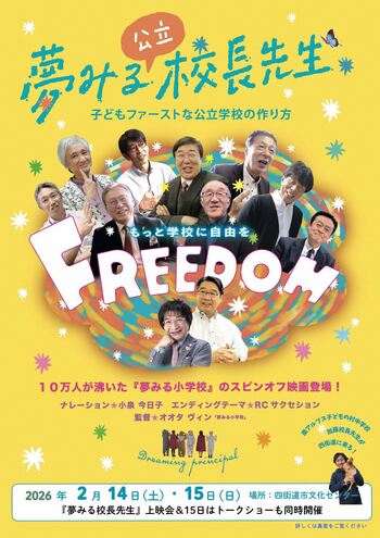こどもたちの“自由な学び”を支える校長先生たちの姿が描かれ、「もっと自由に、もっと楽しく」そんな教育の可能性を感じられるドキュメンタリー映画、「夢みる校長先生」を上映します。