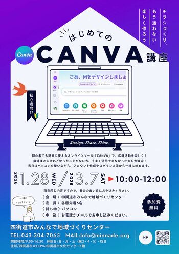 チラシだけでなく名刺やSNS画像なども簡単に作成できるオンラインデザインツール「Canva」を活用し、広報物づくりに挑戦してみませんか。