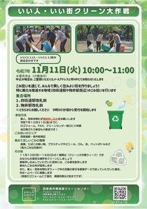 ごみの落ちていない美しい街を作るため、「いい(11)人・いい(11)街」の語呂合わせである11月11日(火曜)とその前後で、市内のごみ拾いを実施します。