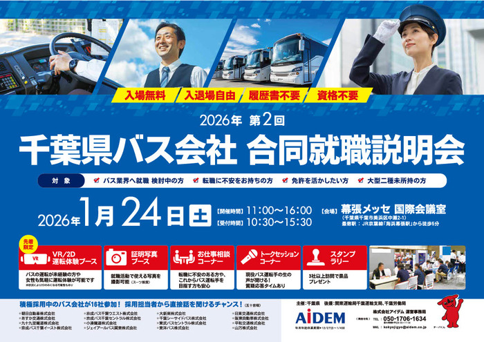 このたび、令和7年度第2回千葉県バス会社合同就職説明会を下記のとおり開催します。